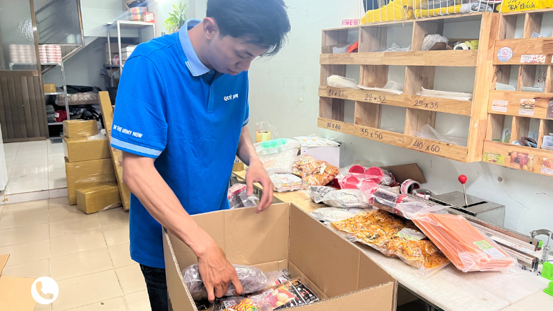 Hỗ trợ đóng thùng carton, gia cố chống va đập. Thực phẩm khô hỗ trợ hút chân không tại kho, giúp gọn kiện và bảo quản tốt trong quá trình vận chuyển.
